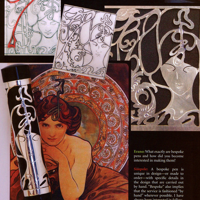 Simpole is a highly regarded pen restorer and pen maker who is perhaps best known for his recent collaboration with Conway Stewart to produce the Centenary pen and the over-sized Exhibition pen. What may be less known about Simpole is that he also builds custom- made-or bespoke-pens on a very limited basis. "Bespoke" is an English term usually used to describe custom-made clothing. Simpole applies this context to pen making, creating highly personalized pens for his customers one of whom is rumored to be a certain member of the British aristocracy.