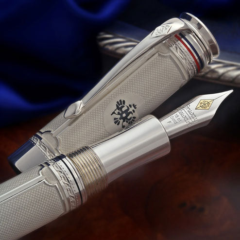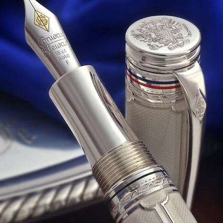 The Conway Stewart Romanoff is crafted by hand from rods of sterling silver and engraved in the style of Faberge.