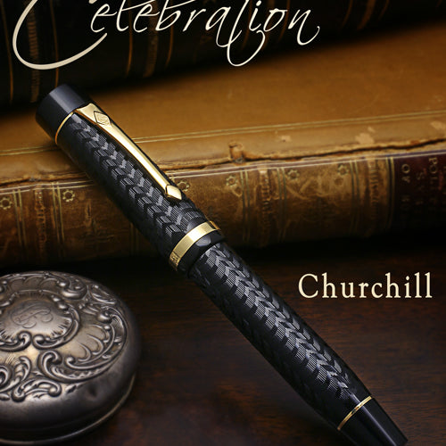 Der Celebration Churchill erweckt das Beste traditioneller Vintage-Schreibgeräte in einem praktischen und langlebigen modernen Design zum Leben. Die Befüllung erfolgt über das zuverlässige Patronenkonvertersystem, und die Churchill Celebration wird mit den Federn Fein, Mittel, Breit, Extra Breit, Italisch Fein, Italisch Mittel und Italisch Breit aus massivem 18-karätigem Gold angeboten.