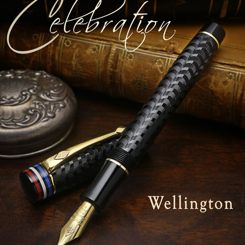 Der Celebration Wellington basiert auf einem unserer beliebtesten aktuellen Modelle, einem Stift mit dezent geschwungener Kappe und Schaft, die für eine angenehme Balance zwischen Auge und Hand sorgen. Dieser stilvolle, moderne Look wird mit dem zeitlosen Look einer Gravur im Vintage-Stil und einem klassischen, tiefschwarzen, handgefertigten Harz gepaart. Das Ergebnis ist ein Stift, der die perfekte Wahl für alle ist, die dezente und klassische Eleganz schätzen. Die Befüllung erfolgt über das zuverlässige Patronenkonvertersystem, und die Celebration Wellington wird mit den Federn Fein, Mittel, Breit, Extra Breit, Italisch Fein, Italisch Mittel und Italisch Breit aus massivem 18-Karat-Gold angeboten.
