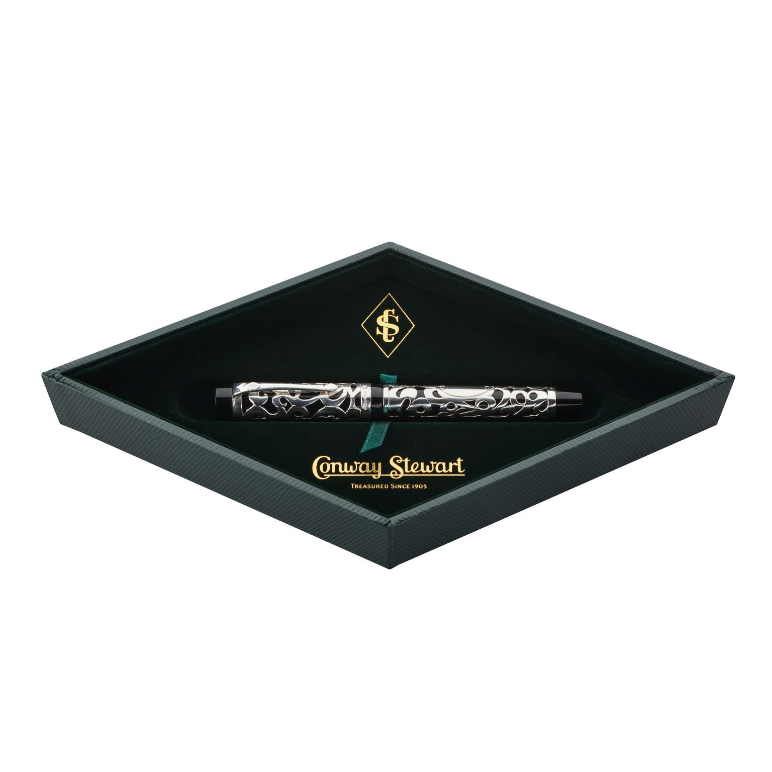 Conway Stewart se complace en anunciar el último color nuevo en el popular modelo Churchill : Excalibur con adornos de plata esterlina maciza contrastados. La resina Churchill Excalibur hecha a mano consta...