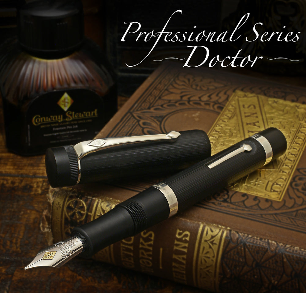 Parfaitement équilibrée dans la main, l'édition Doctor's est dotée de plumes en or massif 18 carats avec placage rhodium pour correspondre à la garniture en argent sterling poinçonnée, et est proposée dans un choix de remplissage à levier traditionnel et de système de remplissage de convertisseur de cartouche fiable.