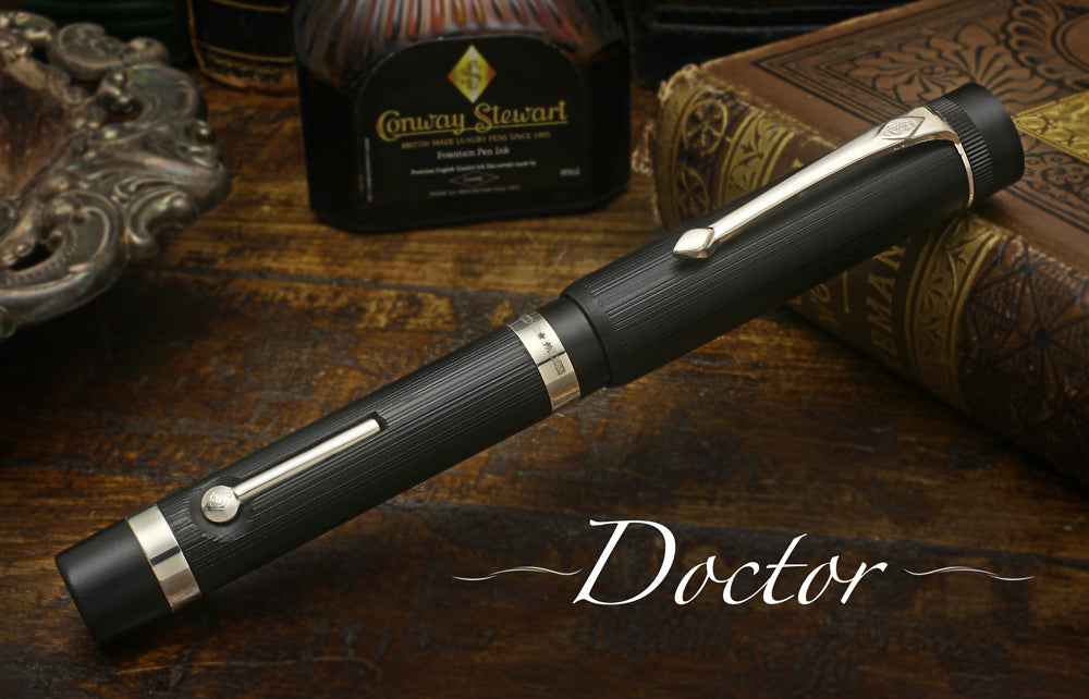 L'édition Doctor est basée sur notre modèle populaire Marlborough Vintage. Fabriqué à partir d'ébonite véritable, le matériau de choix des fabricants de stylos-plumes jusqu'au début des années 1930. Ce nouveau design est accentué par le motif de gravure classique à fines rayures sur toute la longueur du capuchon et du corps, qui est encore rehaussé par un processus de polissage Tiffany pour créer une finition mate.