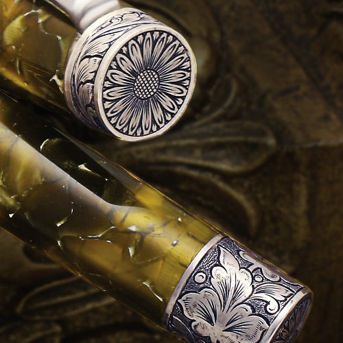 Il faut de nombreuses heures pour graver méticuleusement chaque édition limitée Balmoral. Une attention particulière aux détails est apportée à l'extrémité du corps, au bouchon, à la bande du capuchon et à la bande décorée sur la section de préhension qui comporte la signature de Marcus Hunt et le numéro individuel d'édition limitée du stylo Balmoral.