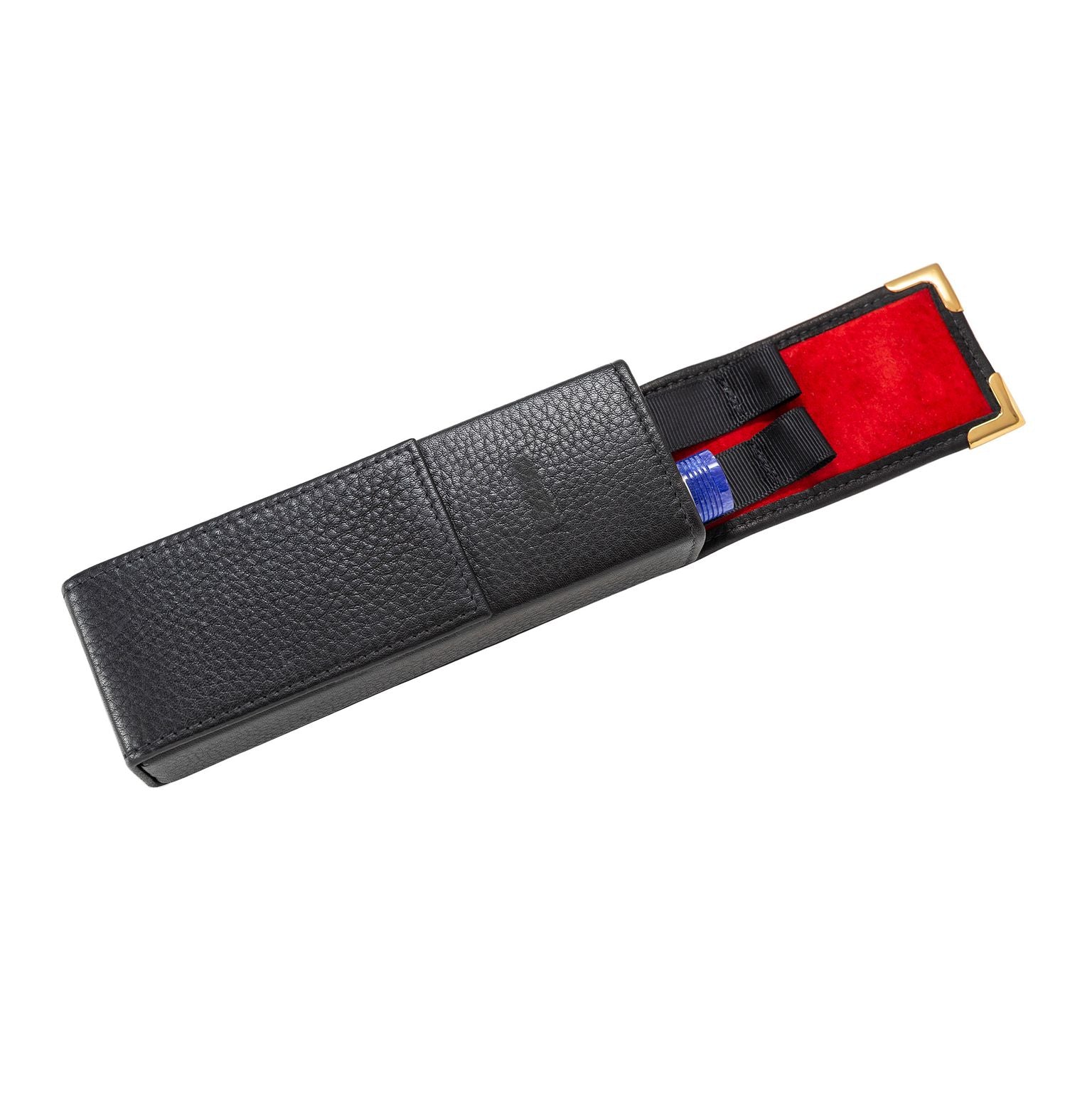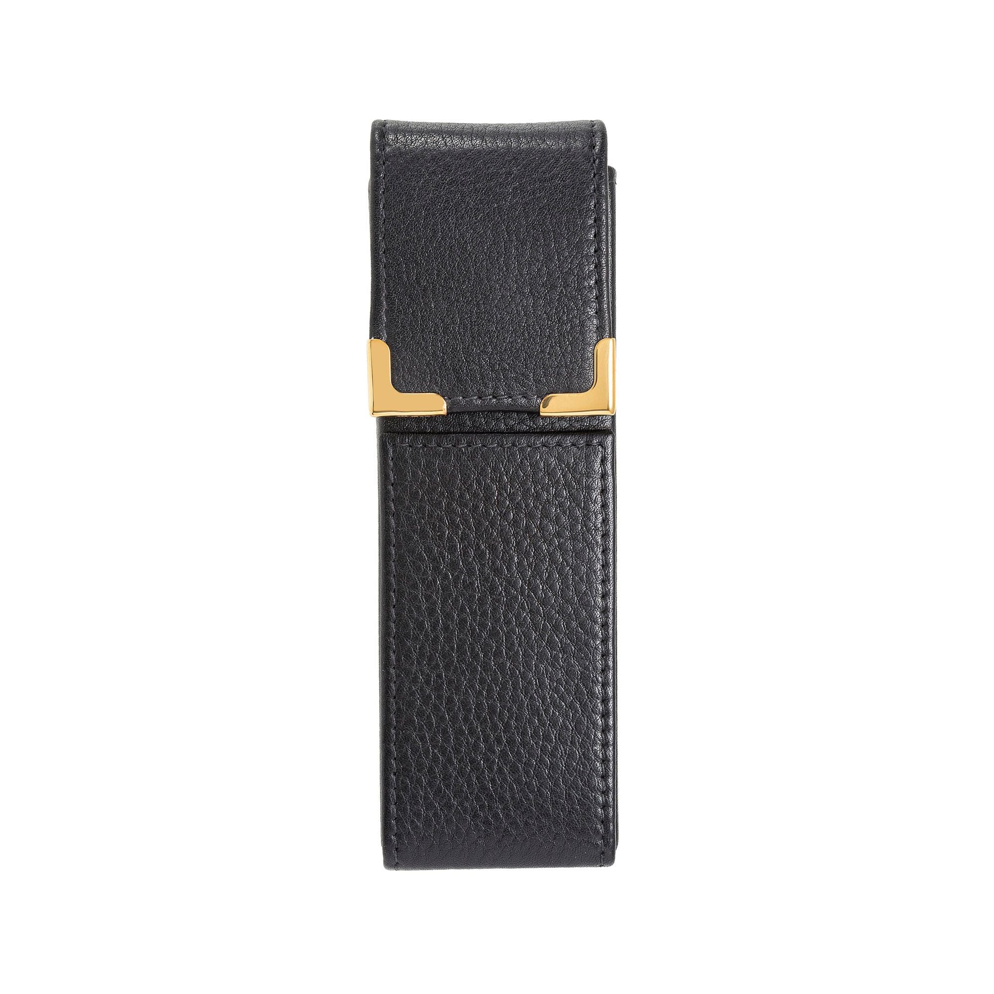 Leather 2-pen case with 23ct Gold Plated Fittings