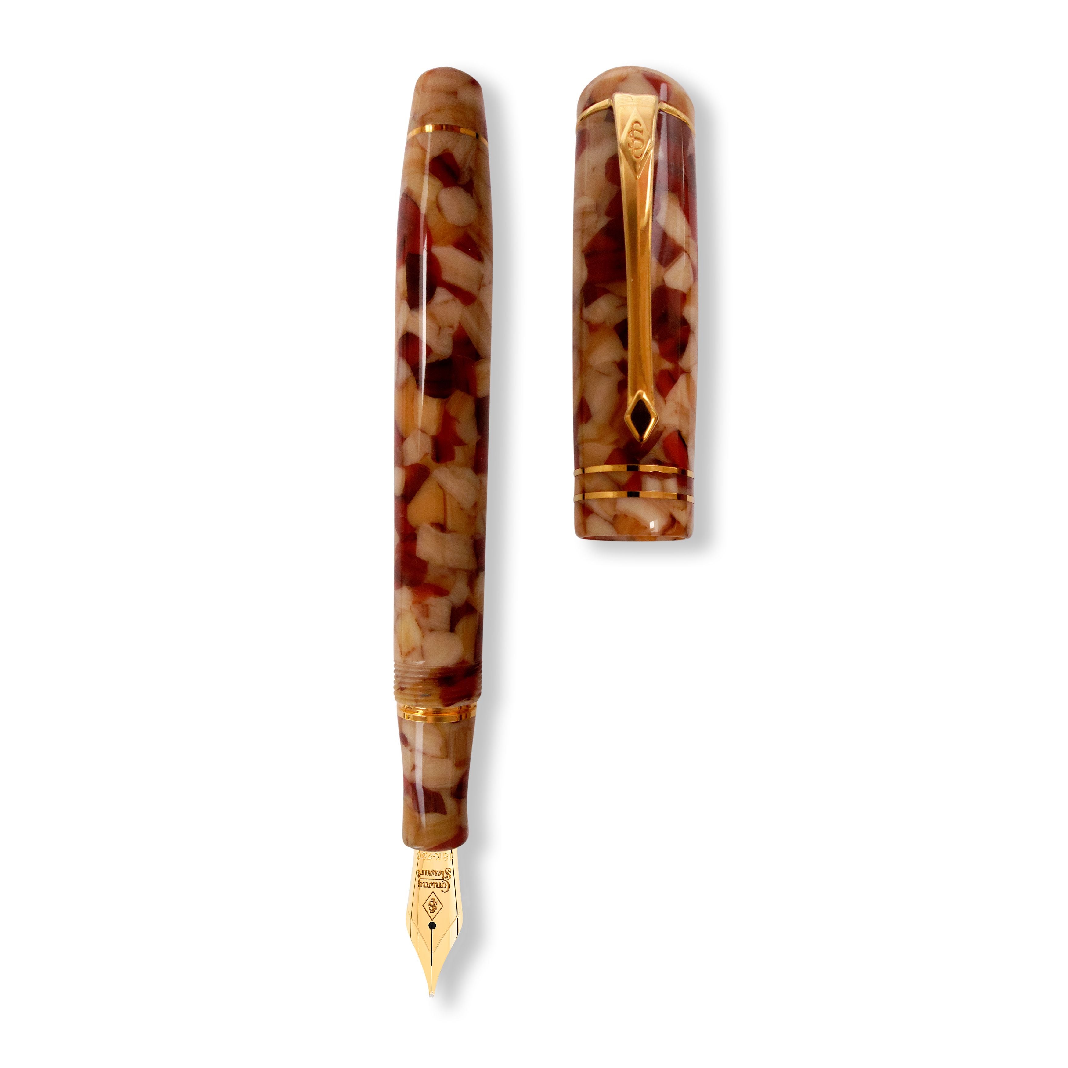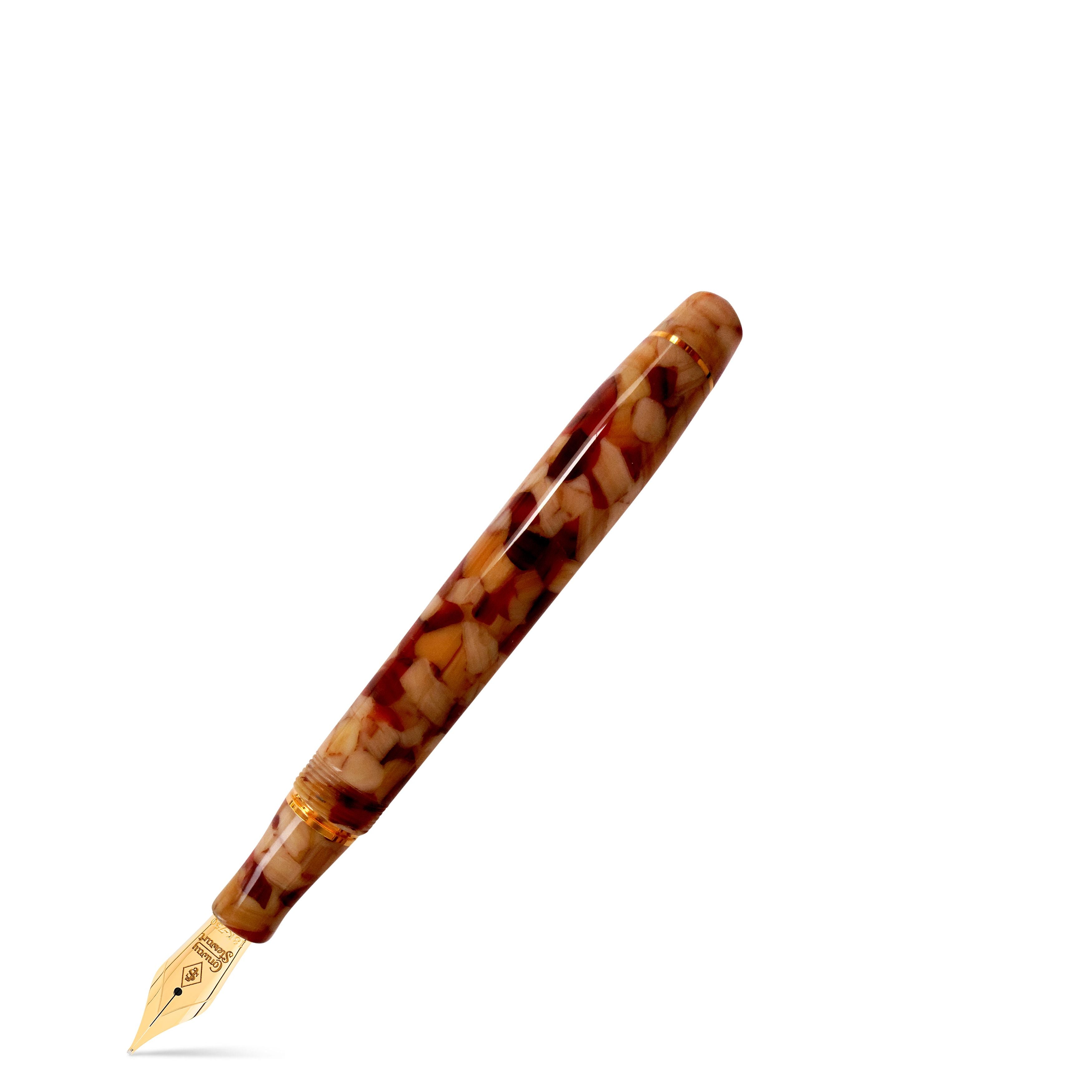 60周年記念! 100 シリーズは 1954 年に初めて発売され、すぐにコンウェイ スチュワートがこれまでに製造した中で最も人気のあるオーバーサイズ ペンの 1 つになりました。 60年前に誕生したこの人気の象徴的なモデルを記念して、コンウェイ・スチュワートは、ピスタチオの手作り樹脂で作られた100シリーズの特別版「60周年記念100特別版」をリリースできることを嬉しく思います。これは NEW 100 シリーズ ペン シリーズの最初の製品です。 100 シリーズの主要なカラー範囲を間もなく発売する予定ですが、この特別版は 60 個のみです。 60 個すべてが作られているため、すべて工場で発送を待っており、数日以内にすべてなくなる予定です。歴史の一部を手に入れるこの機会を逃さないように、今すぐ注文してください。 人気のオリジナル 100 シリーズをベースにしたこの滑らかで微妙な曲線美の万年筆は、人気のピスタチオ仕上げのプレシャスレジンで作られており、ライトグリーンとダークグリーン、アンバー、クリーム色の真珠光沢のある色合いが優雅にブレンドされています。きらめく緑と琥珀からの微妙な光の遊びは、この素材の深みを示唆しています。このデザインのスリムでエレガントなラインは、ペンが手の中で回転するにつれて、きらめく色をさらに生き生きとさせます。この大胆でユニークな色の組み合わせは、受賞歴のある 100 シリーズの豊かな純スターリングシルバーのトリムによって引き立てられています。 すべてのコンウェイ・スチュワートのペンと同様、すべての筆記具は英国デボン州の中心部、プリマスにある工房で作られています。各 100 シリーズ ピスタチオは、万年筆またはローラー...
