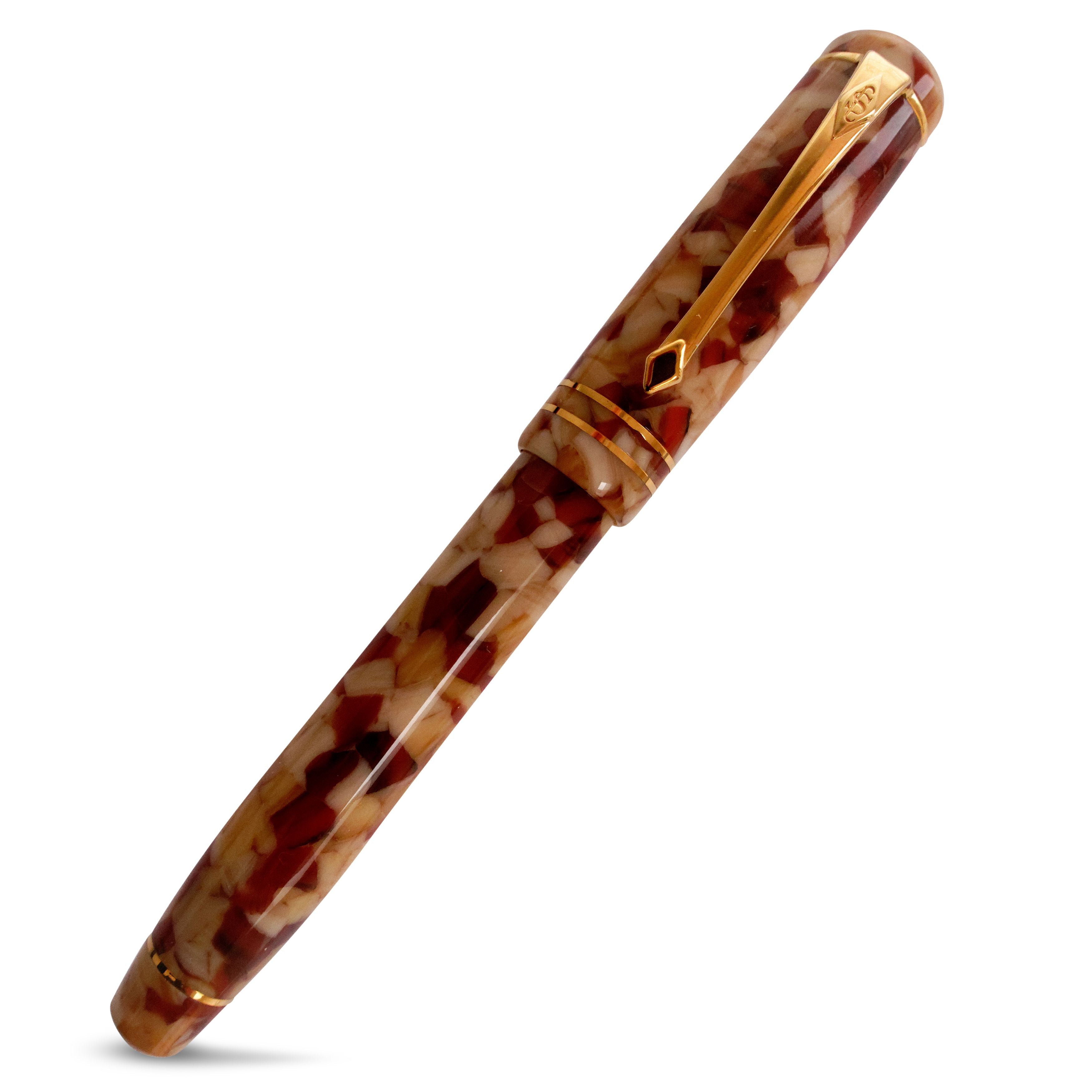 「2014年ペン・ワールド・リーダーズ・チョイス・アワード — 最優秀文化的または歴史的テーマ」にノミネート 1920 年代の古典的な時代には、高級万年筆は単なる贅沢品ではなく、日常の必需品と考えられていました。これらの万年筆の中で最も高級なものは、多くの場合、貴金属のオーバーレイ、華やかなフィリグリー、彫刻、さらにはダイヤモンドで装飾されていました。これらは贅沢なステータスシンボルとして機能し、富と退廃の派手な誇示が溢れていた時代でも注目に値しました。新しいコンウェイ スチュワート ギャツビーは、この時代を題材にして、エナメルの限定版シリーズに劇的な新しい外観をもたらします。 このデザインの目標は、アールデコ時代を象徴するスタイルと賑やかなエネルギーを取り戻すことでした。万年筆の黄金時代のヴィンテージペンから引き出された由緒あるフラットトップの形状から始まり、幅広い手のサイズでバランスが取れる形状とサイズを慎重に作り上げました。キャップとバレルの両方に線、長方形、正方形を形成する複雑な連動デザインを使用したギャツビーは、1920 年代に初めて誕生した大胆な新しいスタイルを古典的に体現したものです。キャップとバレルにはホールマークの入った純スターリングシルバーを選択し、輝く光沢に磨き上げられ、手作業で施されたエナメル加工に選ばれた深い赤と黄色の色と対比されます。結果は大胆でスタイリッシュで、使用するたびにコメントが集まること間違いなしです。 貴金属を装飾するエナメル芸術は、何世紀にもわたってヨーロッパで非常に愛されてきた伝統です。ギャツビーに使用されている繊細な彫刻デザインを生き生きとしたものにするのに最適な選択であることが判明しました。キャップとバレルを覆う鮮やかな黄色の背景の中から、豊かな明るい赤のアクセントが輝きます。半透明のエナメルを通して、彫刻の鮮明なデコ デザインが生き生きと浮かび上がり、光の下でキャップやバレルが動くたびに、この素晴らしいデザインの新たな側面が明らかになります。 コンウェイ・スチュワートは、英国の最高の職人技との協力関係に誇りを持っています。当社の貴金属エナメル シリーズのアーティストは、ジュエリー、盾、トロフィーの創造性とデザインで知られています。 Robert Glover M.A. RCA は、数多くの業界タイトルを出版しており、多くの著名な賞やプレゼンテーションを受賞しています。彼の作品には、主要なテレビ賞、英国音楽業界の有名で象徴的なブリットアワードのトロフィー、独占的な企業および軍事プレゼンテーションなどがあります。グローバーのこれまでの依頼には、ヒュンダイ造船会社の会長、モナコのグレース王女殿下へのプレゼンテーション作品、キュナード・ライン社のフラッグシップQE2、さらには王族向けの銀製品やパラシュート連隊と衛兵旅団向けの連隊用銀製品が含まれています。 当社のペンは最高級の素材のみを使用し、英国で手作りされています。当社の高級筆記具の製造には、233 以上の個別の工程が必要となります。当社の職人は、無垢のスターリングシルバー棒の選択、手作業によるエナメルの塗布、各筆記具の最終的な手作業研磨に至るまで、細部への細心の注意を払っていることに誇りを持っています。当社のすべての貴金属製筆記具には、925 スターリングシルバーまたは 18 カラット純金の世界標準である英国ホールマークが刻印されています。 ギャツビー リミテッド エディションのキャップ、バレル、フロント セクションの特徴的な純スターリング シルバー構造は、ロジウム メッキがアクセントになった人気の 18...