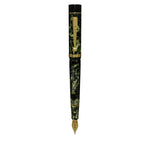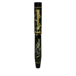 Inspired by the great British statesman who used Conway Stewart pens during the war years, the Conway Stewart Churchill Bracket Green is in every way an impressive fountain pen, and not least because of its size. The term ‘Bracket’ refers to the ‘bracketing’ of the green marbled acrylic between the black tassie on the top of the cap and the black barrel-end section, giving the pen a vintage look.