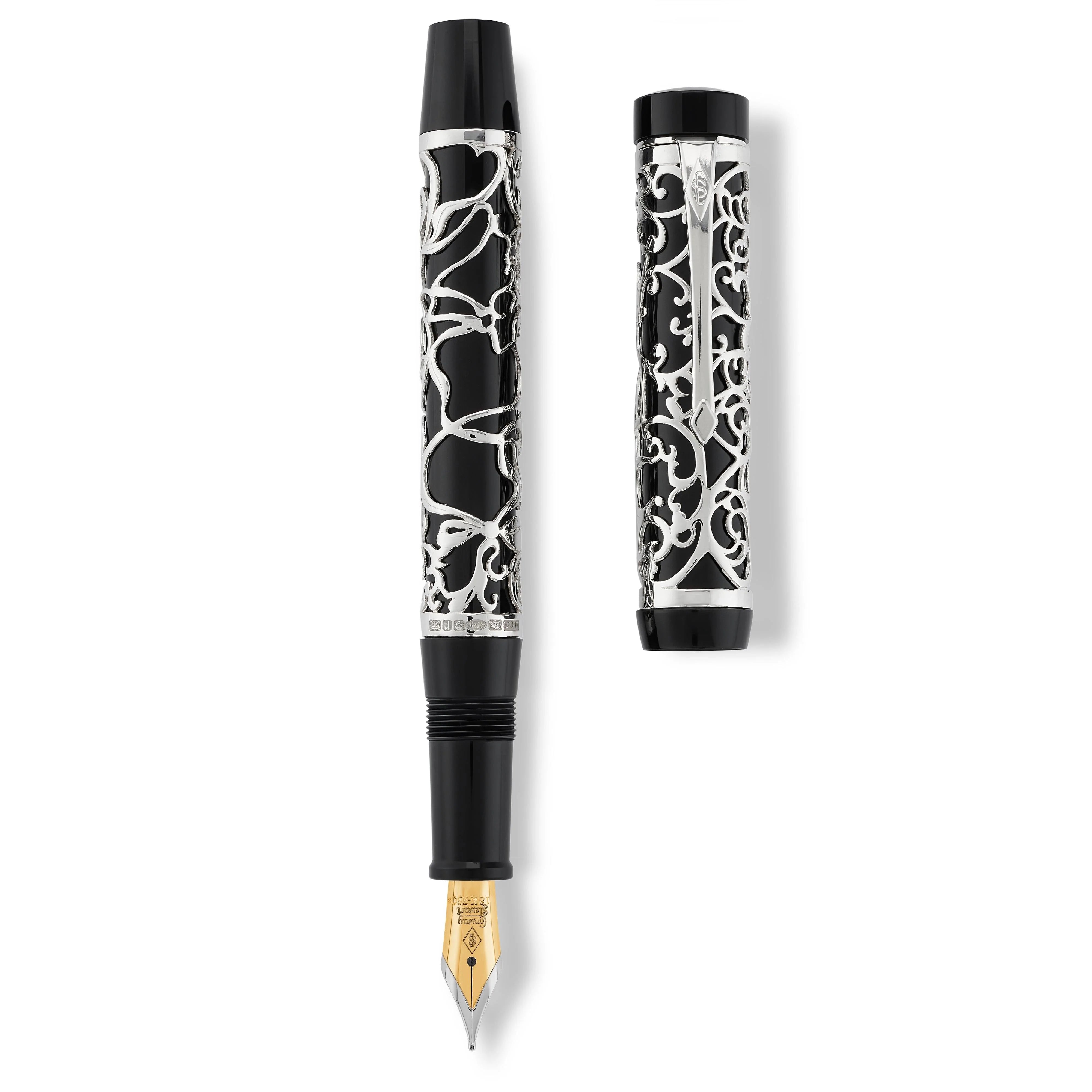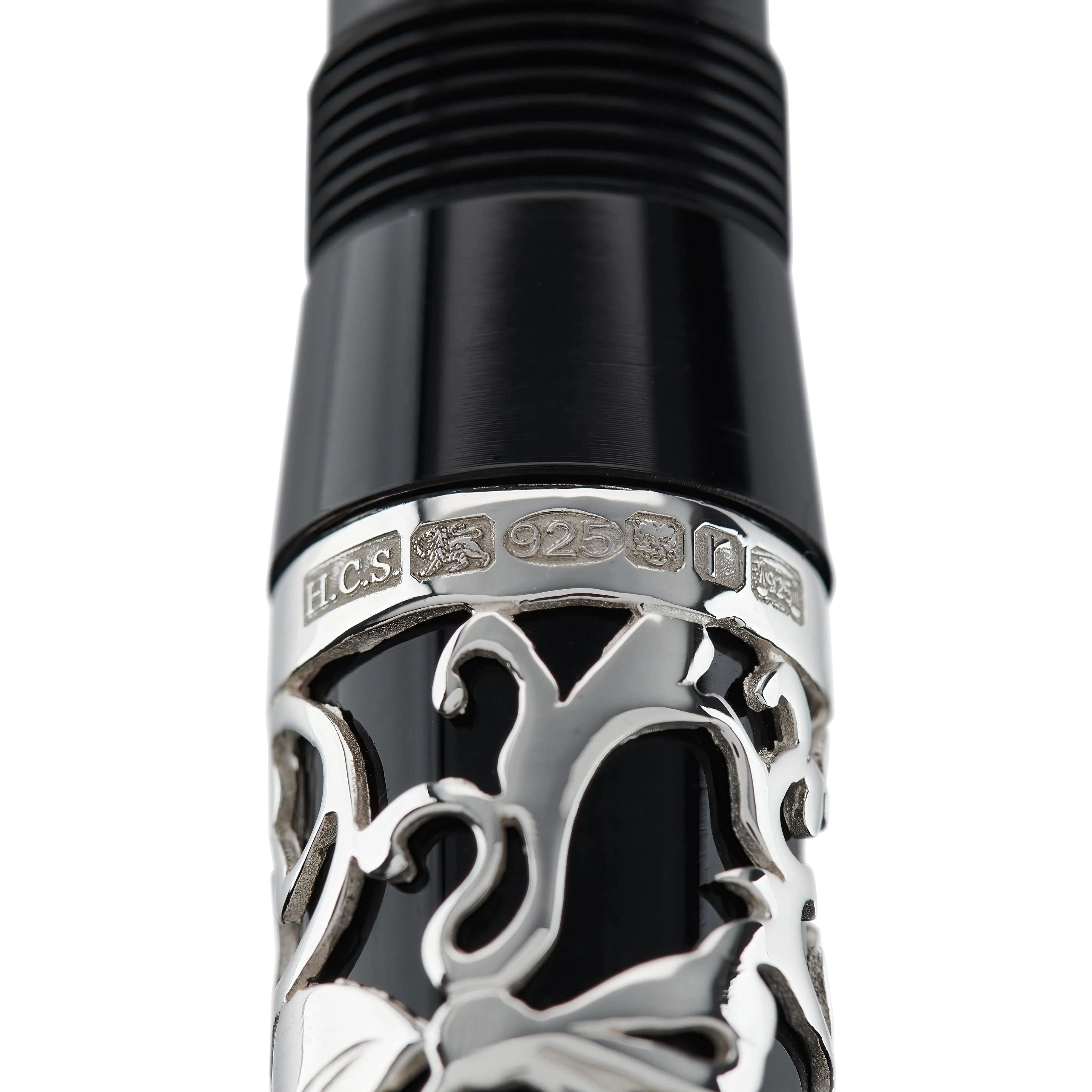 The Sterling Silver filigree is by far the most detailed and intricate filigree design that Henry ever made for Conway Stewart. The Chatsworth design incorporates delicate lace-like strands of silver with a graceful and enchanting bow whose design was drawn from a much loved Valentines card. For every Simpole designed overlay for Conway Stewart, Henry meticulously works into the design the initials ‘C’ & ‘S’ for Conway Stewart.