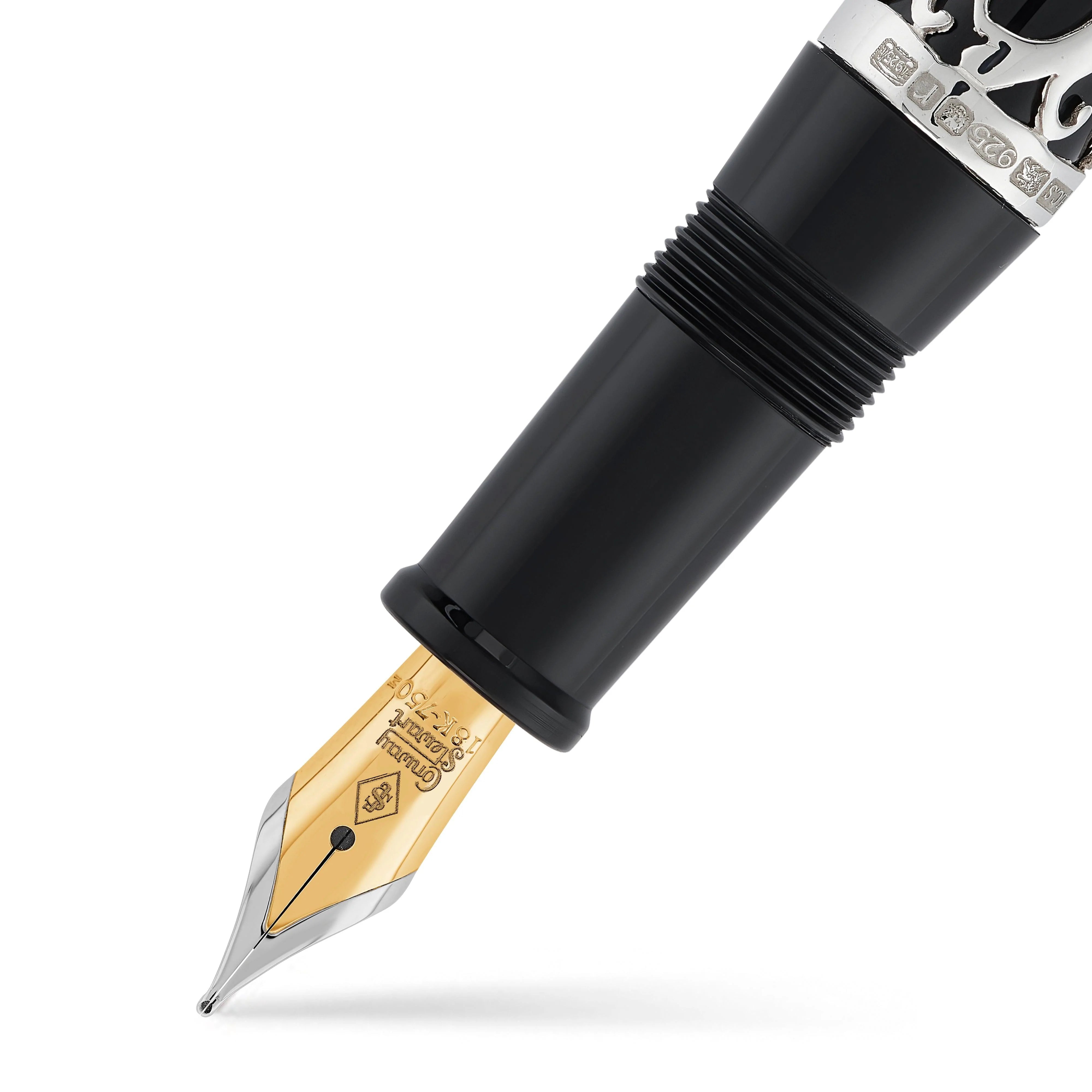 With a choice of Extra Fine, Fine, Medium or Broad 2-tone 18ct gold Conway Stewart nibs. Each pen is housed in a Conway Stewart black leather presentation box which also serves as a showcase pen stand for your desk